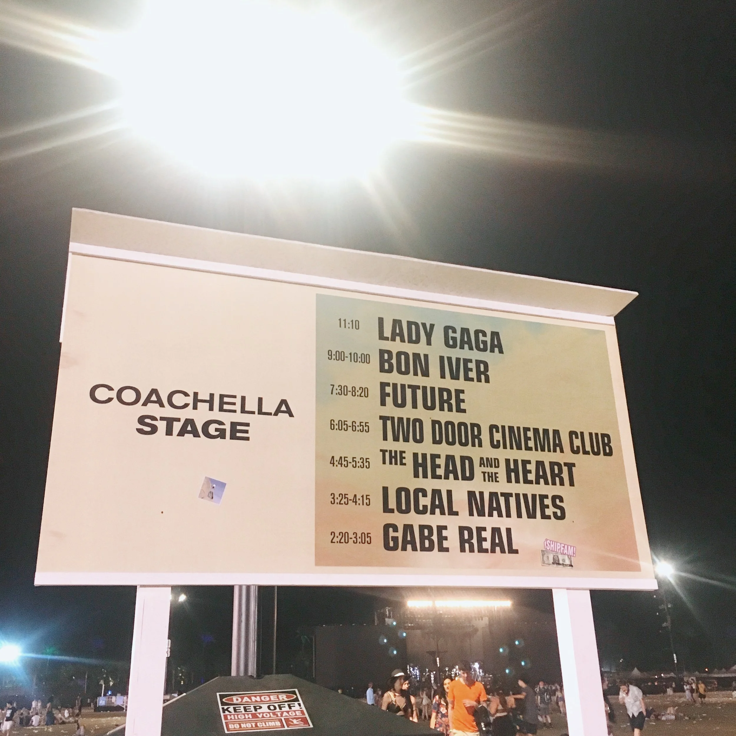 It was INCREDIBLE to watch Gaga working in this environment, to truly see an artist in their work. While I don’t have any photos nor did I get to meet her, being in her energy was amazing. The group who organized getting Monsters to come be extras did two sets of raffles — first was tshirts, gift cards, speakers, etc. and second was two pairs of tickets to W2. Much to the surprise of my terrible luck, I won the second pair. I immediately texted my brother (who was at school in Boston) informing him of my great fourtune, and 48 hours later, he was in LA ready for his first Coachella. When we went to pickup the tickets on our way to Coachella on Friday, I found out that I had won two VIP tickets. And like the idiot I am, I had already put my GA W2 wristband off, so we had a whole ordeal to get it off so I could give it to my friend whom I sold it to.